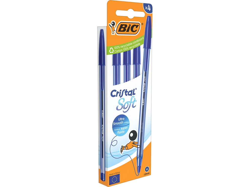 Ecco 4 penne BIC Cristal Soft con inchiostro Easy Glide per una scrittura fino al 35% più scorrevole di una normale penna a sfera BIC. Queste penne Biro BIC sono dotate di una punta media da 1,2 mm che crea linee medie da 0,35 mm per una scrittura facile e fluida. Il cappuccio e il tappo superiore del fantastico fusto azzurro richiamano il colore nero dell'inchiostro. Lâaccattivante design esagonale è diventato unâicona distintiva del marchio: unâautentica penna BIC.