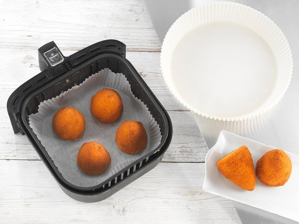 La Carta Forno Ottimo per friggitrici ad aria evita che il cibo si attacchi e sporchi eccessivamente il cestello. Prolunga la vita della friggitrice e riduce i tempi di pulizia. I fori praticati sul foglio garantiscono il passaggio dell'aria sugli alimenti e una distribuzione uniforme del calore. Utilizzabile in friggitrici ad aria, forni convenzionali e forni a microonde. Per un uso corretto, si raccomanda di: non utilizzare a temperature superiori a 220 °C per più di unâora; evitare la vicinanza o il diretto contatto con fiamme o le resistenze elettriche del forno; non utilizzare la carta senza alimenti o impasti.