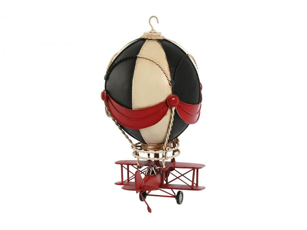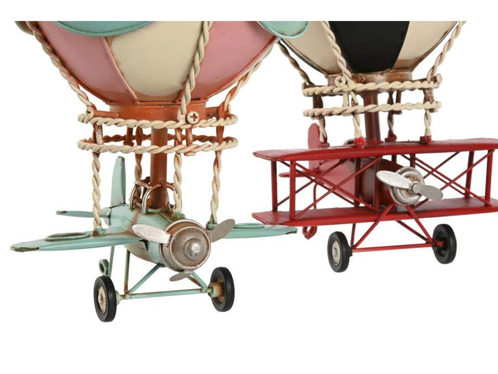 Aereoplano con mongolfiera decorazione in metallo 17x17x32cm globo in 2 modelli assortiti