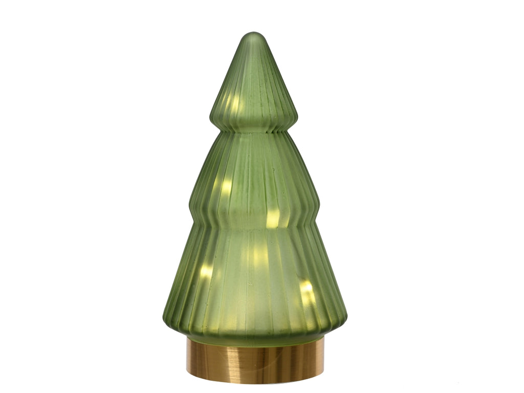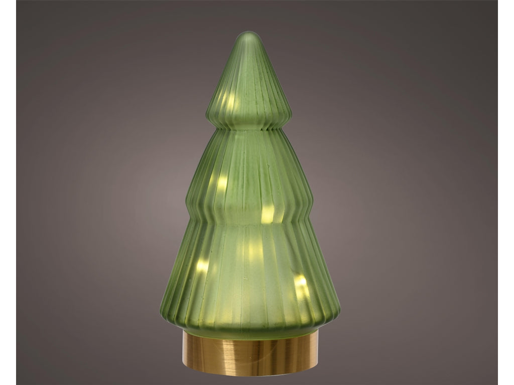 Alberello in vetro con microled d.10,5x19,5cm a batteria verde