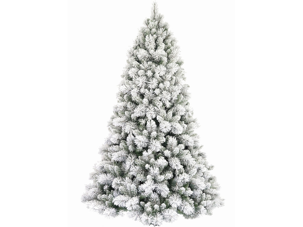 Albero empire floccato in pvc da 225 cm con due tipi di punte (ramo germoglio e ramo adulto)