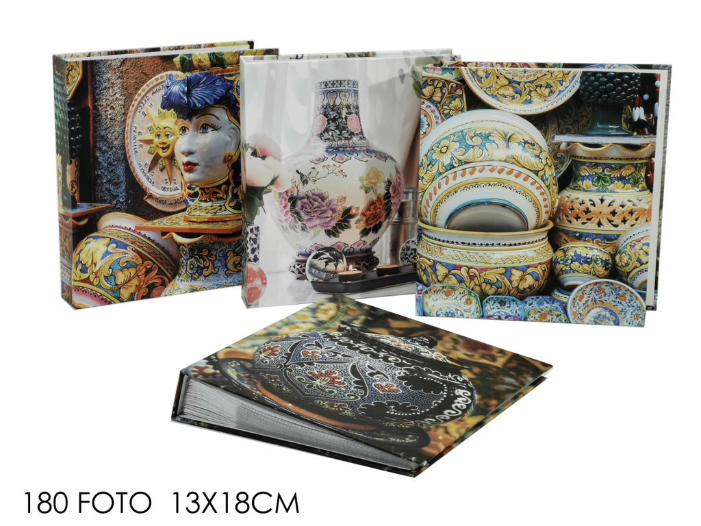 Questo album fotografico è progettato per contenere fino a 180 foto nel formato 13x18 cm ed è disponibile in quattro assortimenti con temi decorativi che richiamano motivi artistici e tradizionali. Perfetto per conservare i ricordi più preziosi, si distingue per la qualità delle immagini di copertina e la resistenza dei materiali. Elegante e funzionale, è ideale sia per uso personale che come regalo, aggiungendo un tocco di stile alla presentazione delle tue fotografie.