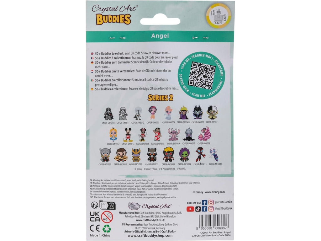 Crea il tuo personaggio preferito con strass in resina dai colori vividi e scintillanti, per un effetto unico e dettagliato, superiore alle alternative in acrilico. Un’esperienza creativa rilassante e gratificante per tutte le età e gli appassionati della pittura diamante. Collezionali tutti! Scopri i Crystal Art Buddies delle tue saghe preferite: Disney Principesse, Marvel, Star Wars, DC Comics, Lilo & Stitch, Il Re Leone, Frozen e molti altri. Ogni personaggio è unico, fedele all’originale e perfetto da collezionare o regalare.