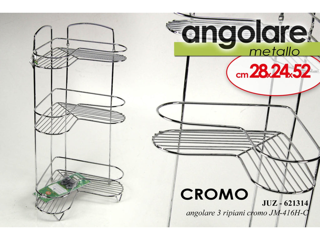 Angolare in metallo con 3 ripiani cromo misure 28x24x52cm