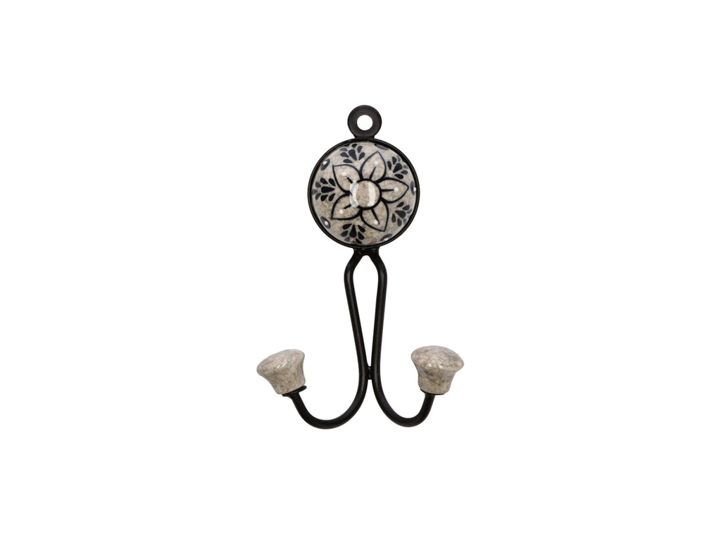 Appendino 2 gancio in ceramica e ferro 6x12cm, 9 varianti assortite