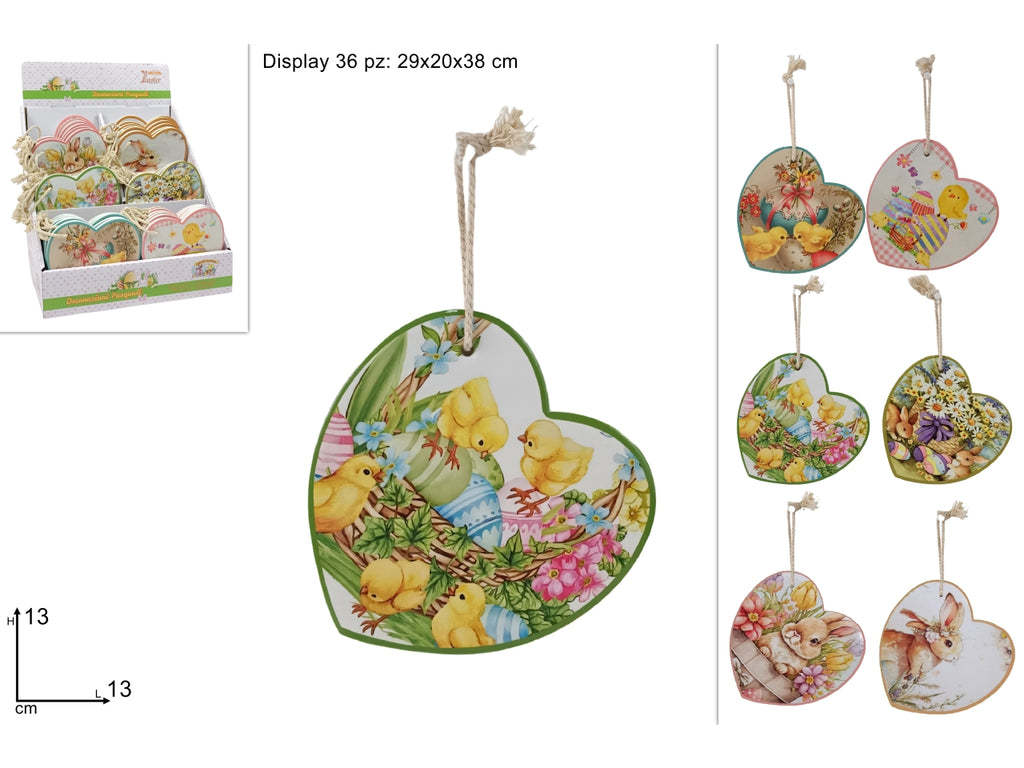 Appendino cuore ceramica 13cm decori pasquali assortito