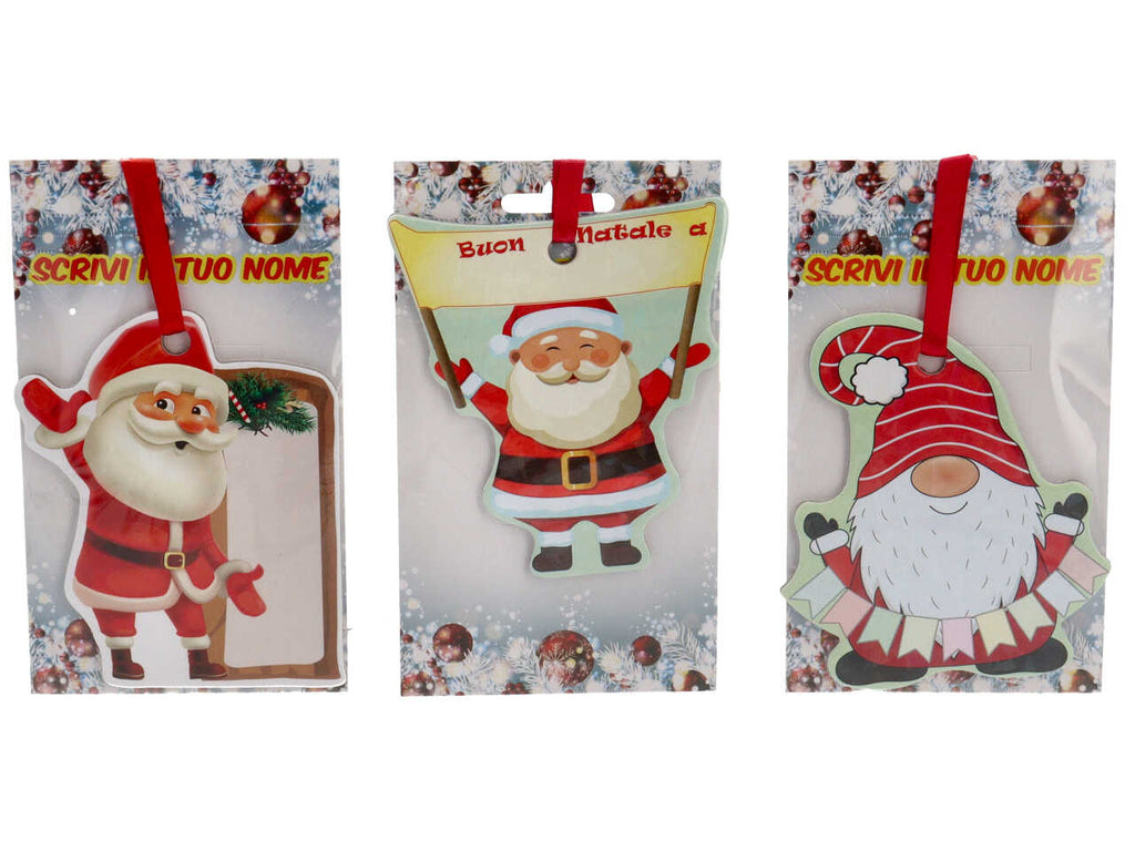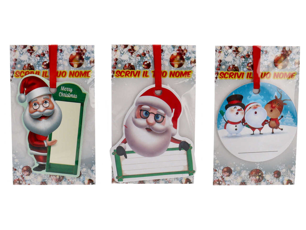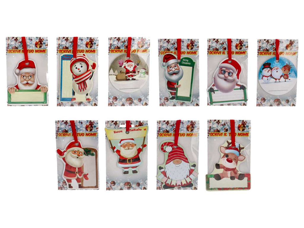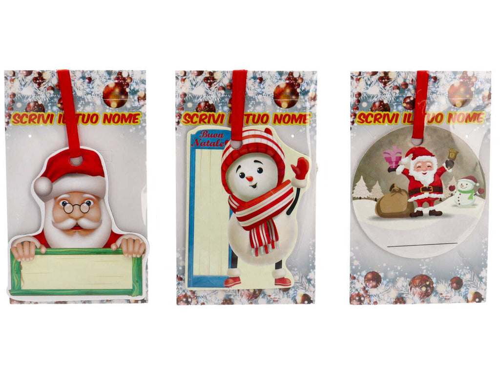 Decorazione natalizia segna nome con laminazione multicolor e appendino in raso Segna nome natalizio appendibile al tuo pacco regalo con il nome della persona a cui regalarlo.