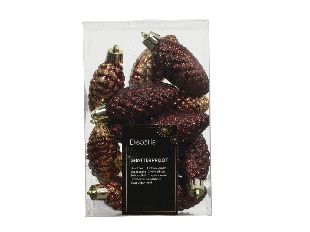 Appendino pigna in confezione da 12 pezzi bordeaux con glitter