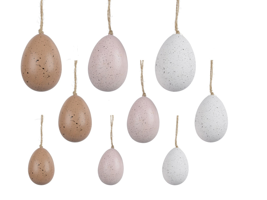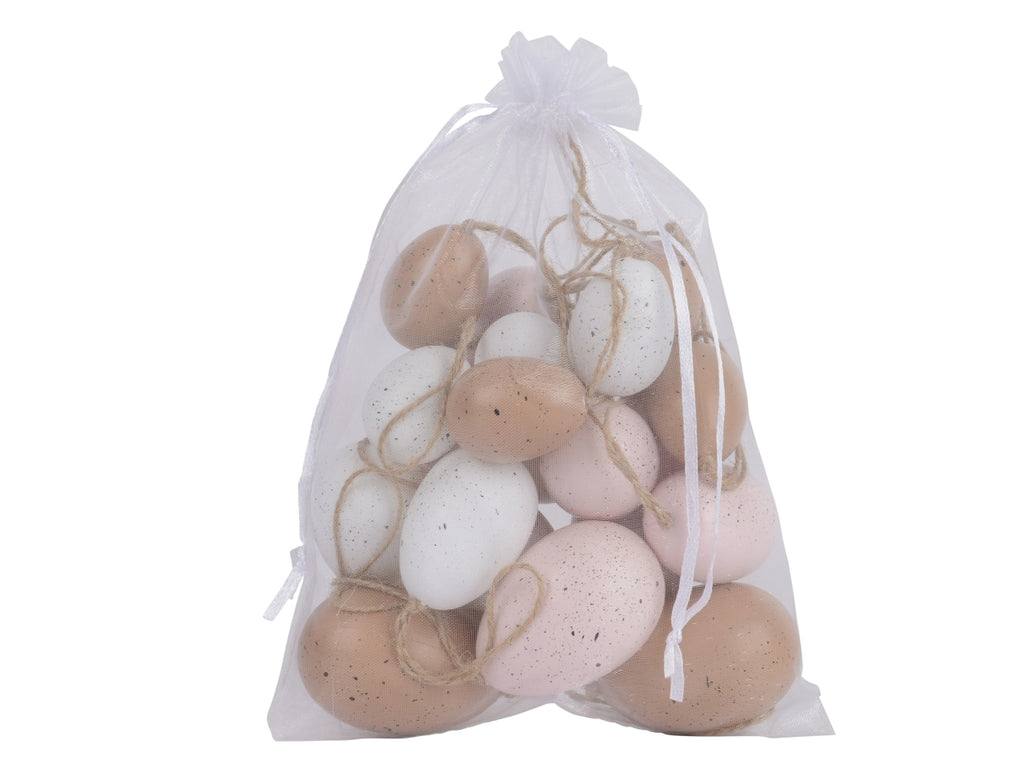 Invita la primavera in casa tua con queste bellissime uova di Pasqua Decoris, ideali per creare un'atmosfera calda e accogliente durante la stagione primaverile. Ogni uovo è dotato di un gancio in juta naturale, che consente di appenderle facilmente a rami, ghirlande o altre decorazioni. Il design a forma di conchiglia e le delicate tonalità pastello, nei toni del naturale, del bianco e del rosa pallido, aggiungono un tocco discreto ai tuoi interni. Realizzate in polistirolo leggero e caratterizzate da un giocoso motivo a pois, si adattano perfettamente a uno stile di vita rustico o naturale.