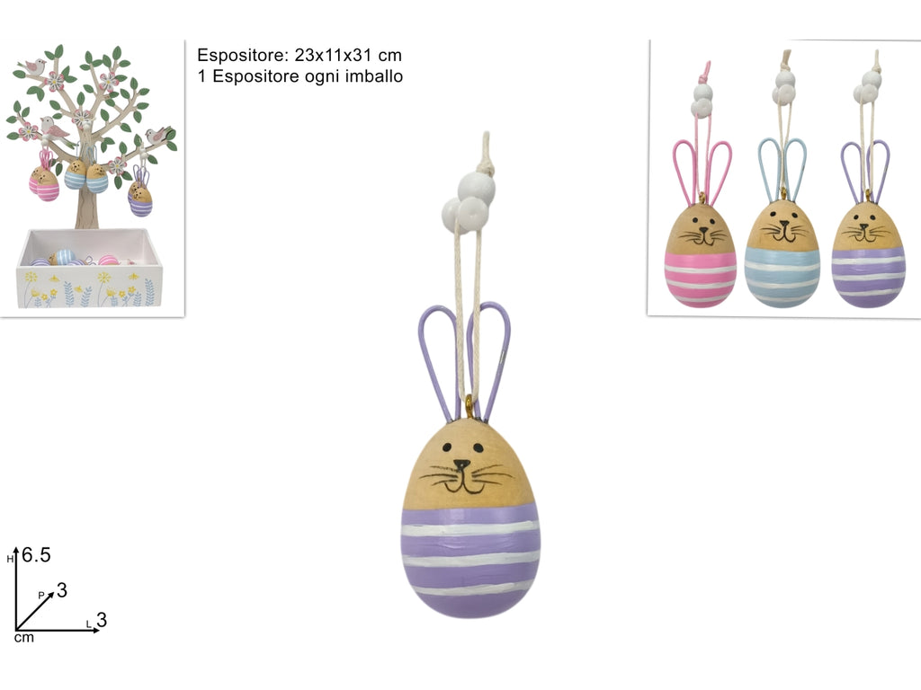 Appendino uovo coniglio in legno in 3 colori assortiti