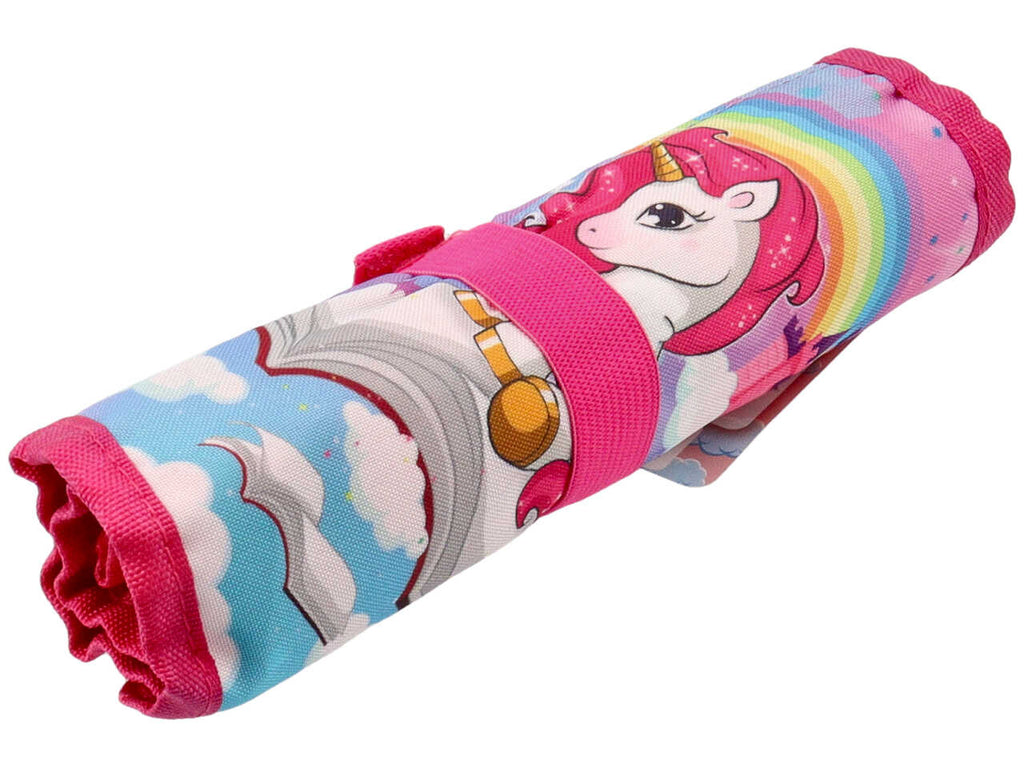 Astuccio richiudibile a nastro contenente 24 pastelli,Dimensione 14x5x4cmPeso 40 gColore rosaMateriale tessutoLa confezione comprende 1 astuccioPersonaggio UNICORNOEt consigliata 3+Sesso FProvenienza CinaCertificazioni CEBrand Mc