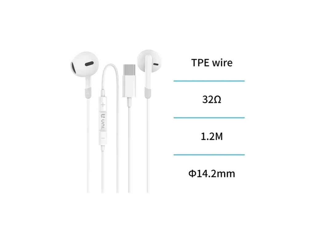 Unità grande da 14,2 mm, suono originale altamente risolto e meraviglioso, filo TPE morbido e delicato sulla pelle, design classico semplice in tinta unita, il connettore di tipo C è ampiamente compatibile, comodo nell'orecchio e non cade.