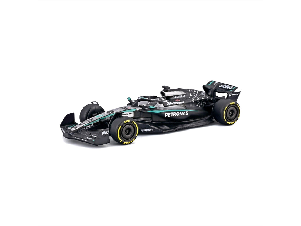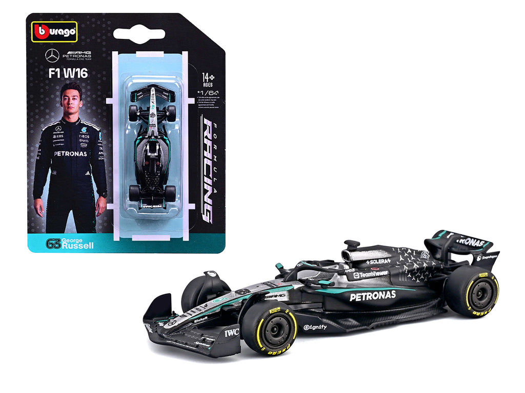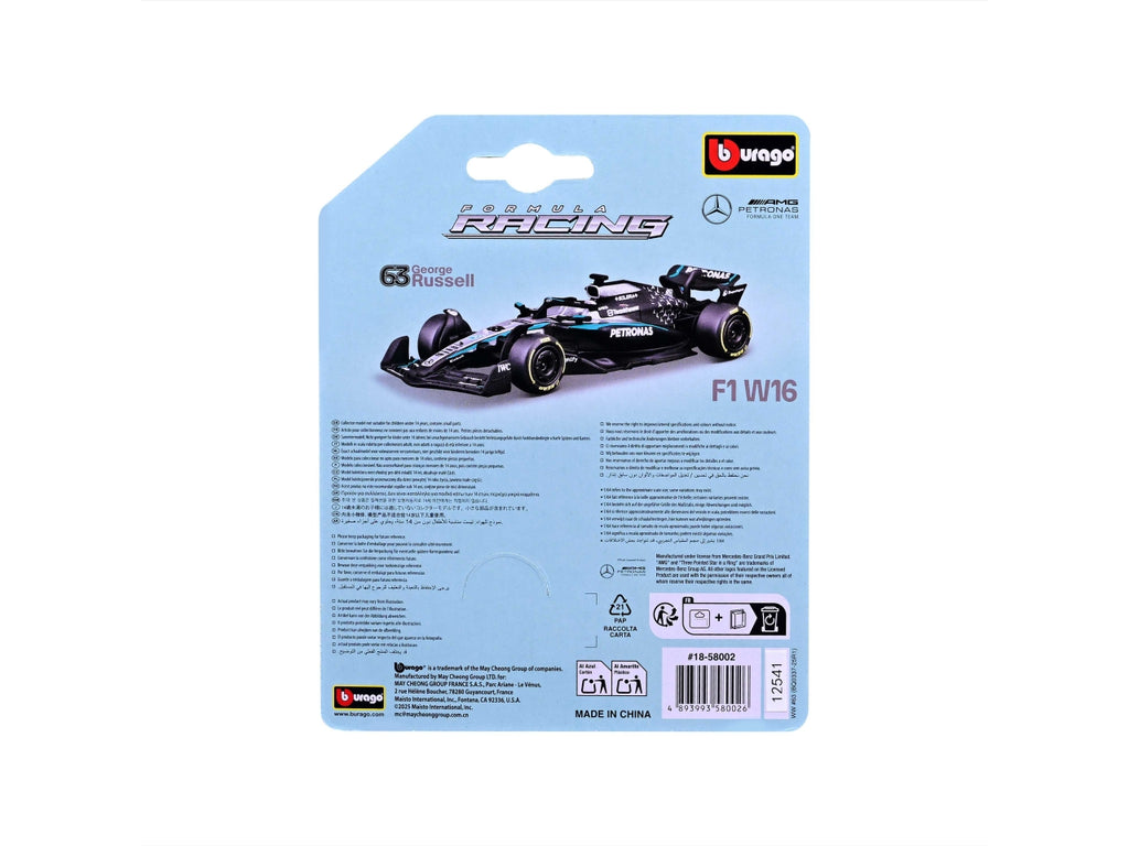 Porta nella tua collezione la potenza e la precisione della nuova Mercedes-AMG F1 W16 2025 #63, la monoposto guidata da George Russell. Questo modello in scala 1:64 riproduce con cura le linee moderne e lâaerodinamica evoluta della vettura 2025, con livrea ufficiale e dettagli realistici che catturano lâessenza del team Mercedes. Il modello è confezionato in un elegante blister da collezione, ideale sia per lâesposizione che per la conservazione, perfetto per gli appassionati di Formula 1 e i fan del pilota britannico.