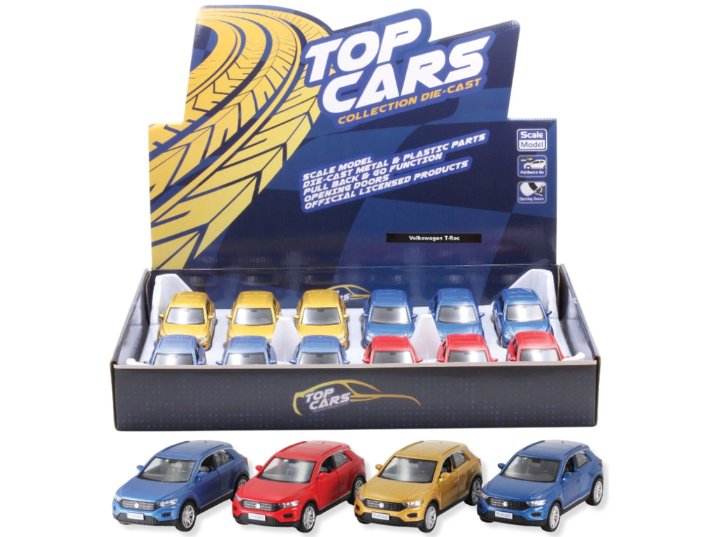 Auto Volkswagen T Roc 2014 di colore blu e rosso opaco