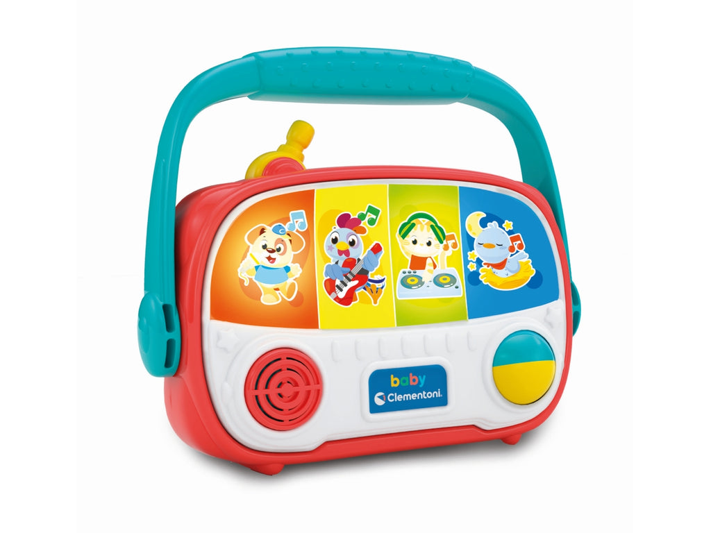 Un piccolo centro attività portatile a forma di radiolina per giocare con la musica e divertirsi con gli amici animali. Premi i pulsanti per scegliere la stazione musicale ed il genere preferito! Con pulsanti colorati e luminosi che attivano canzoncine diverse per guidare il bambino in esperienze di gioco coinvolgenti e interattive attraverso stimoli sempre nuovi. Alle canzoncine, ai suoni e ai diversi effetti luminosi che catturano l’attenzione del bambino si aggiungono piccole interazioni fisiche per sviluppare l’aspetto cognitivo e la motricità fine. Ogni pulsante, attività e materiale impiegato è studiato per rendere facile e accogliente l’utilizzo del gioco da parte del bambino. Ad ogni animale corrisponde un genere musicale per far familiarizzare il piccolo con diversi ritmi: uno stile pop per il cane, rock per il gallo, rap per il gatto e rilassante per l’uccellino. Quattro grandi pulsanti da premere per ascoltare i versi degli animali e le loro canzoncine, una pallina per stimolare l’attività meccanica e la comoda maniglia per trasportare la radiolina ovunque. La cura del dettaglio, lo studio delle attività, la ricerca dei colori sono frutto di una competenza 100% Italiana che garantisce la qualità e la sicurezza del prodotto.