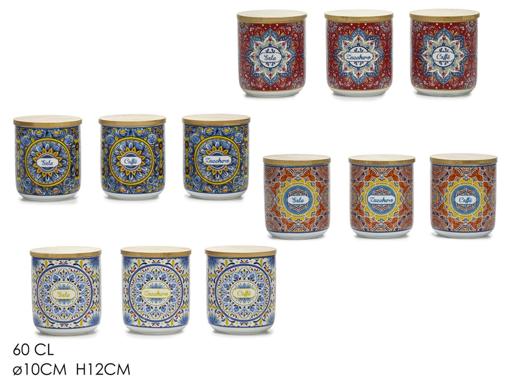 Barattolo 60cl decorazione mandala con coperchio in bamboo in 4 assortimenti