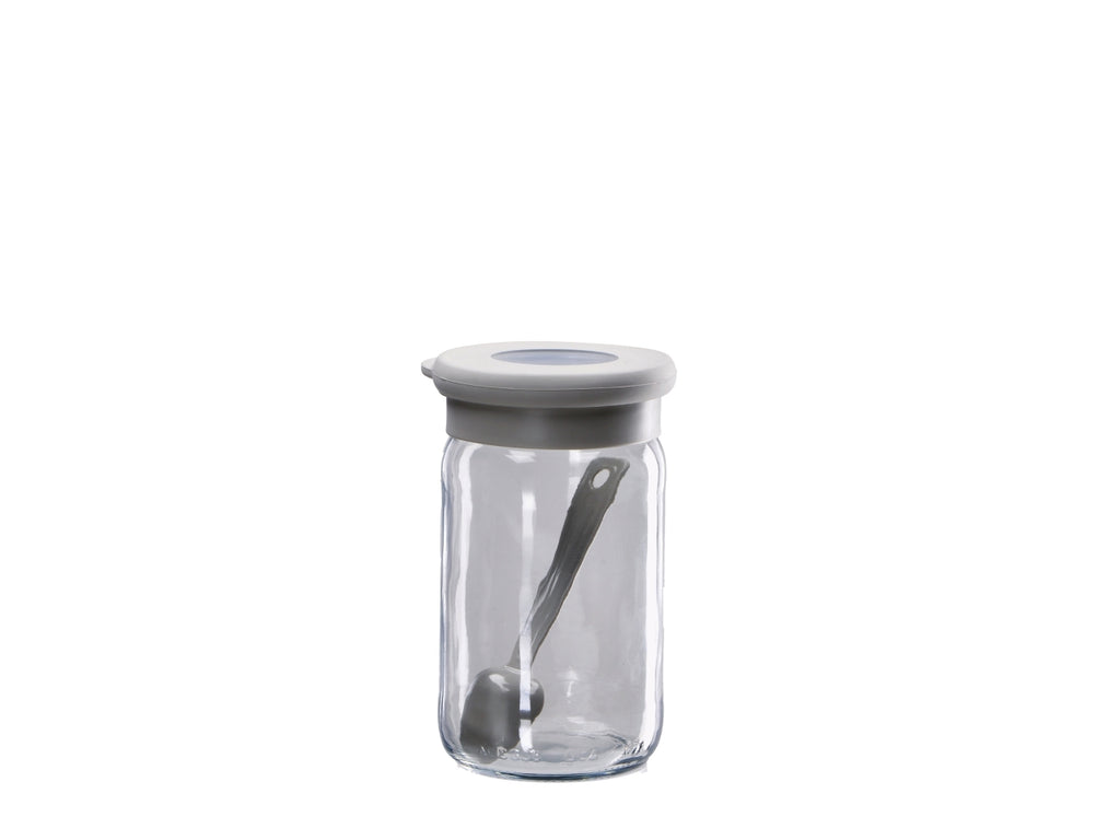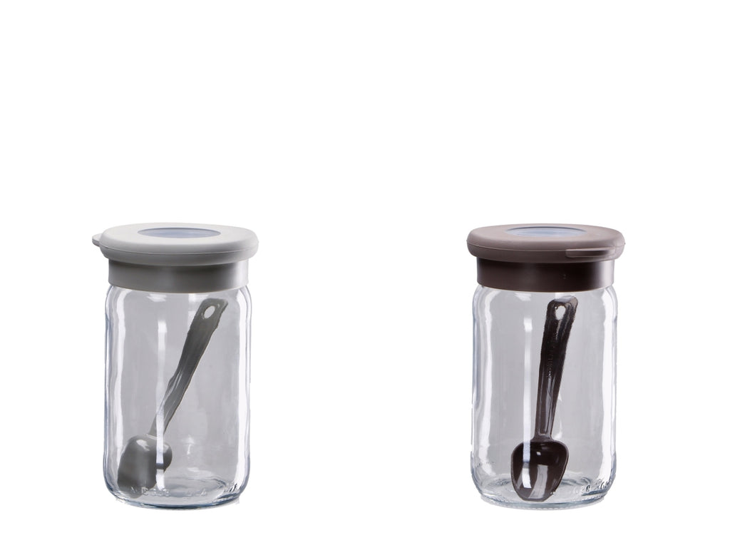 Barattolo in vetro con coperchio e cucchiaino 8xh.13cm, 2 colori assortiti