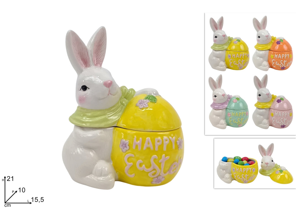 Barattolo uovo con coniglio in ceramica in 4 colori assortiti