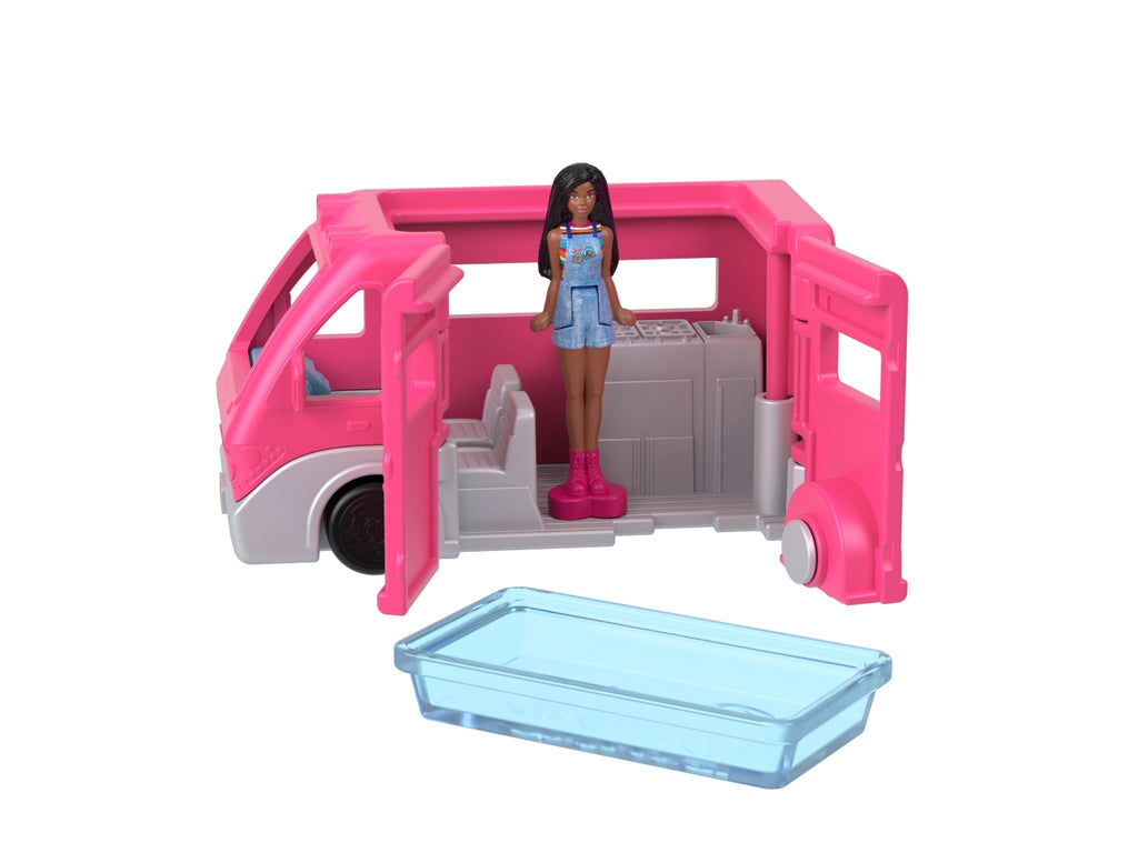 Entra nel mondo della bambola Barbie con Mini BarbieLand, un luogo in cui immaginare in grande e sognare con le versioni mini! Fantastiche gite con sorprese: questi set di mini veicoli sono perfetti per il gioco o l'esposizione. Le riproduzioni su piccola scala dei mezzi di trasporto iconici di Barbie, come il Camper dei sogni, presentano funzionalità divertenti e una trasformazione cambia colore unica per il veicolo! Ogni set include una Barbie da 3,8 cm con vestiti adorabili; inoltre, è snodata in vita per consentirle di sedersi e guidare verso grandi avventure in Mini BarbieLand. I fan dai 4 anni in su vorranno collezionare tutti questi adorabili veicoli per costruire il loro mini mondo!