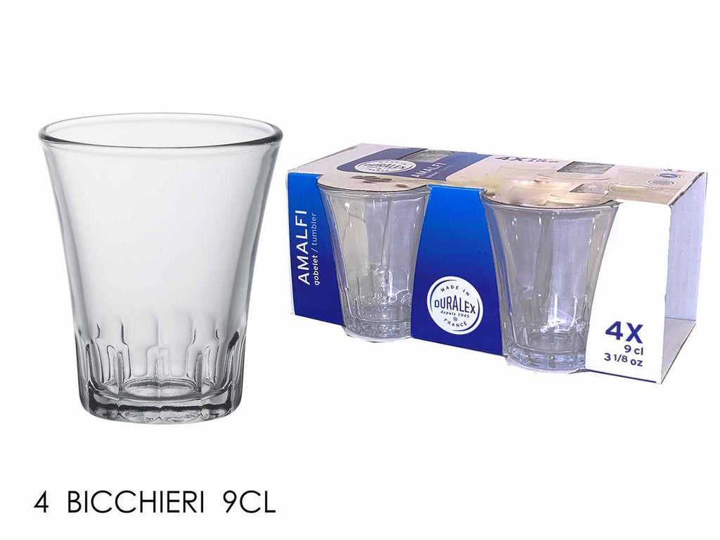 Bicchieri in vetro temperato trasparente linea amalfi 9cl 4 pezzi