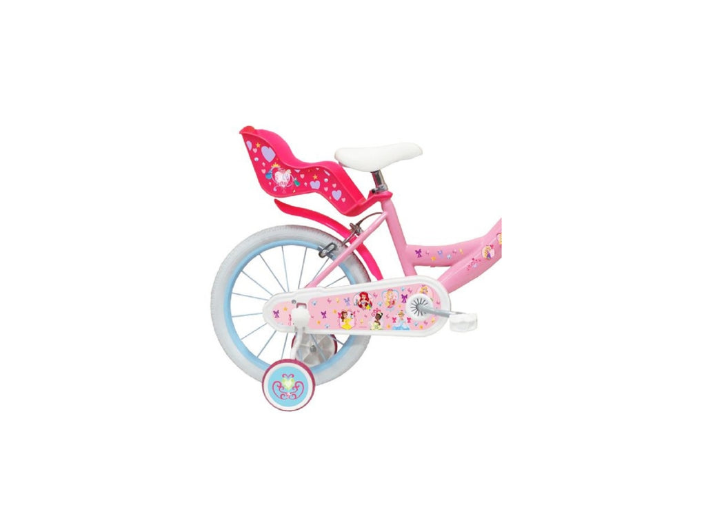 La bicicletta PRINCESS da 16 pollici, modello 36594, è pensata per accompagnare le bambine nelle loro prime esperienze su due ruote, combinando sicurezza, comfort e un design incantevole ispirato al mondo delle principesse. Adatta per bambine dai 4 ai 6 anni, presenta un robusto telaio in metallo verniciato di rosa e decorato con grafiche vivaci e colorate. È dotata di freni caliper anteriori e posteriori per garantire un controllo efficace, pneumatici con camera d’aria montati su cerchi in metallo con raggi regolabili, e stabilizzatori laterali rimovibili per offrire stabilità durante l'apprendimento. Gli accessori includono un cestino anteriore pratico e decorato, un portabambole posteriore a tema e un campanello coordinato, rendendo ogni uscita ancora più divertente e fantasiosa. La bicicletta è progettata per offrire una guida fluida e sicura, con componenti durevoli e uno stile che conquisterà ogni piccola appassionata di principesse.