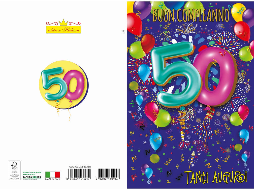 Unesplosione di colori con un cielo festoso pieno di palloncini multicolori e fuochi dartificio scintillanti. 50 anni di pura magia.