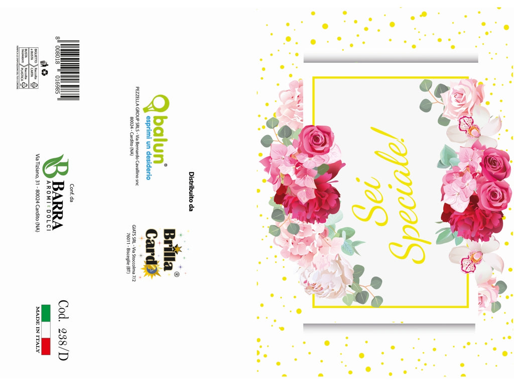Biglietto Donna cornice e fiori "SEI SPECIALE". Laminato oro
