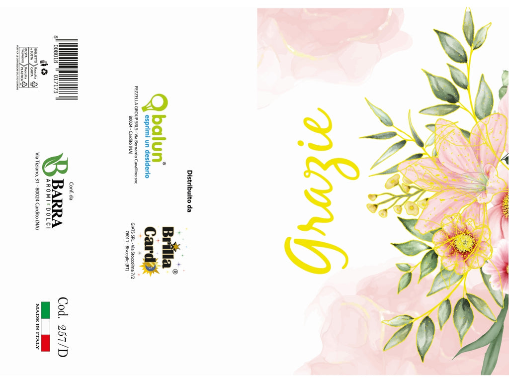 Biglietto generico floreale con scritta "GRAZIE". Laminato blu