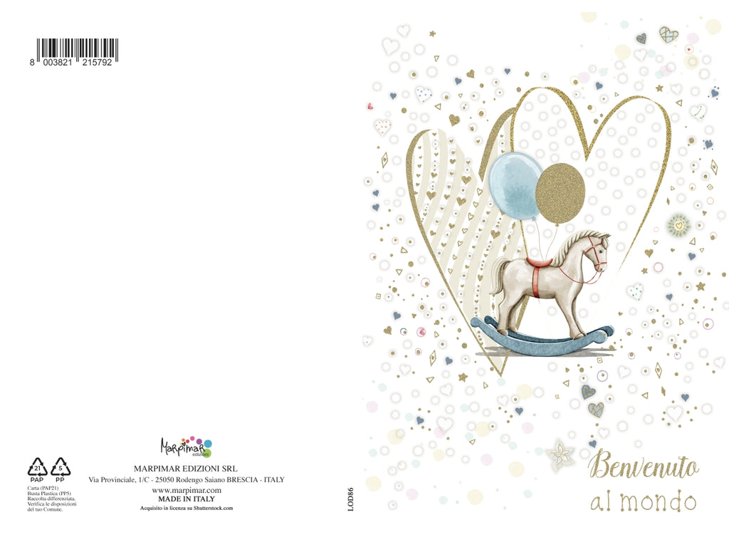 Biglietto nascita azzurro con foil oro e rilievo