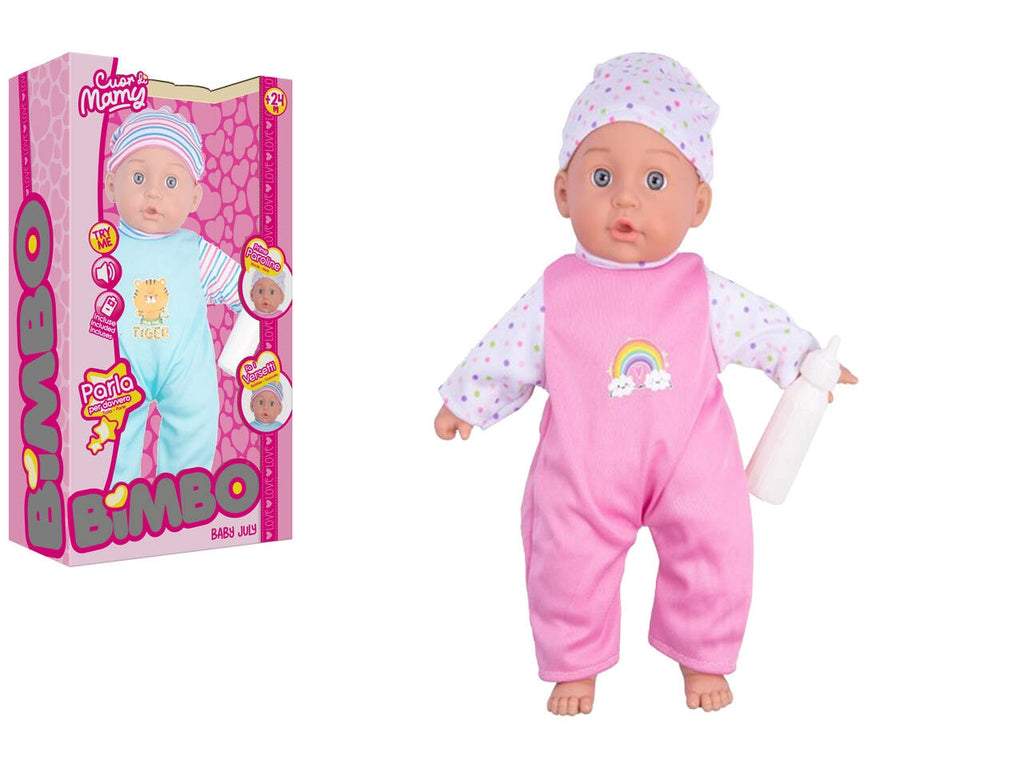 Bambola realistica di 33 cm, con il corpo morbido, funzionante a batterie per ricreare 12 funzioni interattive e permettere un'esperienza di gioco davvero unica. Vestita con morbida tutina e berrettino, ha incluso un biberon per prendersi cura di lei. Disponibili 2 colori assortiti.