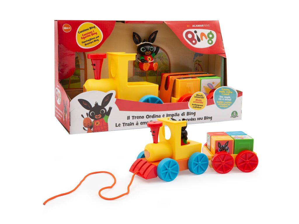 Un set unico che offre un'esperienza di gioco coinvolgente e stimolante per i bambini. Include 4 cubi impilabili con numeri e personaggi di Bing, perfetti per lo sviluppo delle abilità motorie e cognitive. Il set include anche un trenino trainato e carrozza che emette luci e suoni, per un'esperienza di gioco ancora più immersiva.