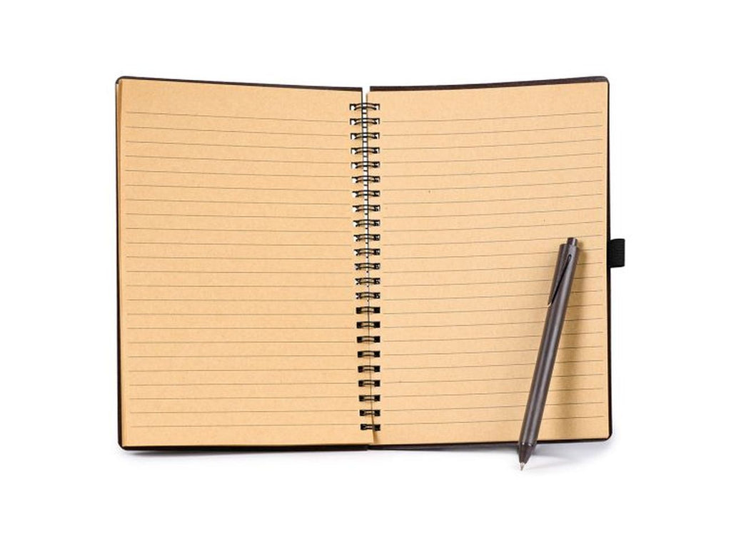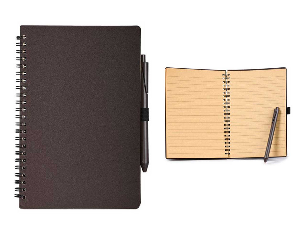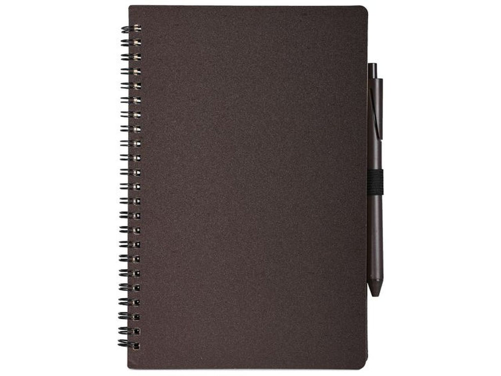 Blocco per appunti con fogli in carta kraft a righe (70 fogli), con penna a sfera realizzata con miscela di polvere di caffè e ABS. Copertina realizzata con miscela di polvere di caffè e PP.