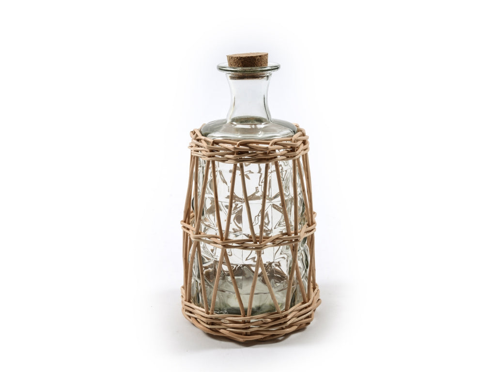 Bottiglia in vetro intrecciata in vimini 1.3l d.14xh.26cm