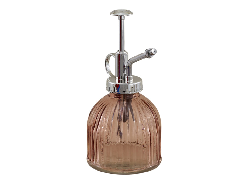 Bottiglia spray in vetro bassa rigata 8x16cm rosa