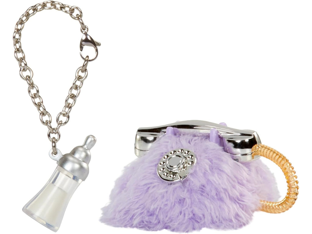 La confezione offre una visione in prima fila della moda Bratz Babyz e presenta un colorato manico a spilla per pannolini. Fai squillare il telefono e indossa il biberon! Ogni Bratz Babyz è dotata di una collana di biberon che funge da portachiavi. Inoltre, ognuna di loro ha un adorabile telefono con peluche che si abbina ai loro abiti.