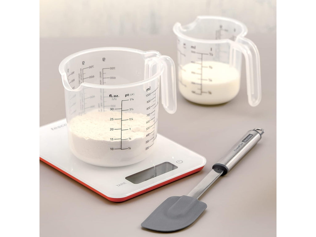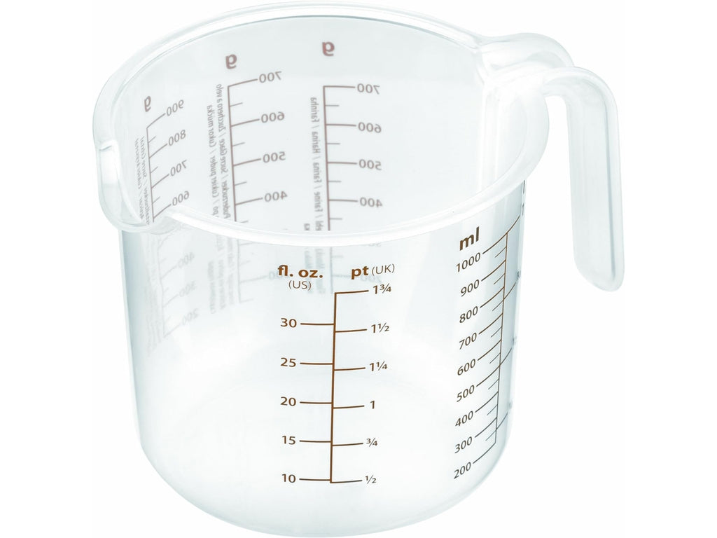 Pratico contenitore dosatore con scala misuratrice sui lati per: zucchero, zucchero a velo e farina in gr. e per liquidi in ml. Prodotto in plastica resistente e semitrasparente, dotato di beccuccio versatore e impugnatura ergonomica.