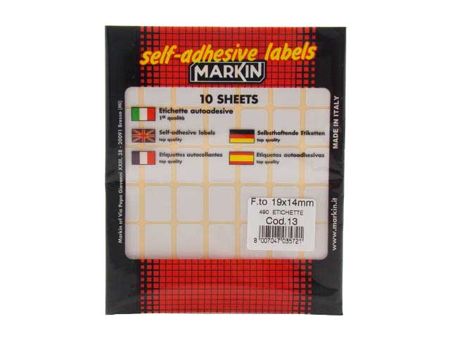 Etichette autoadesive confezionate in buste da 10 fogli, appendibili, in scatola da 25 buste Vuoi offrire alla tua clientela un'opzione facile ed elegante per esporre il prezzo dei prodotti ? Il nostro set di etichette adesive 20x12mm stampabili è la soluzione adatta alle tue esigenze. Pensate per tutte le attività commerciali, il nostro set di etichette autoadesive bianche si rivela essere la soluzione più comoda e pratica per tutti i commercianti. Infatti sono pensate per resistere nel tempo, grazie alla loro formidabile colla, posso rimanere ben salde e serrate a qualsiasi tipo di superficie senza problemi. Aggiungi da subito il nostro set di etichette adesive prezzi nel tuo catalogo prodotti ! )