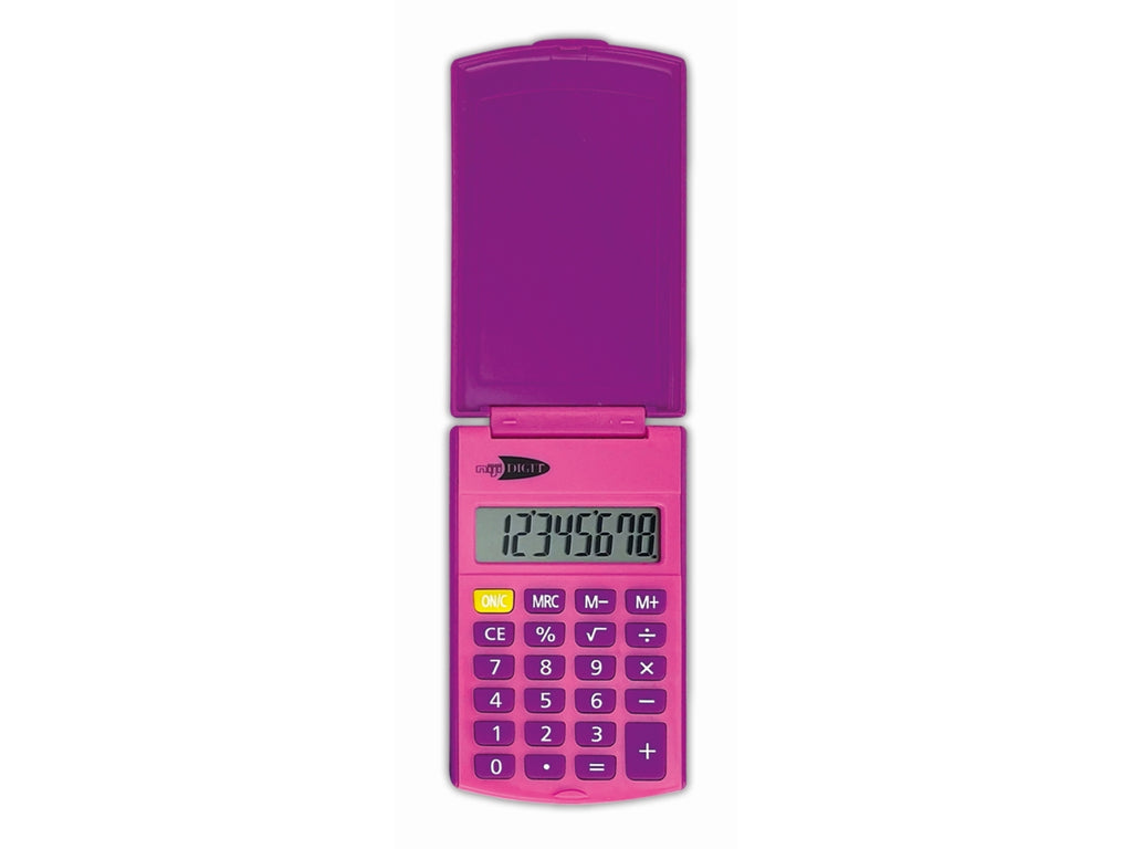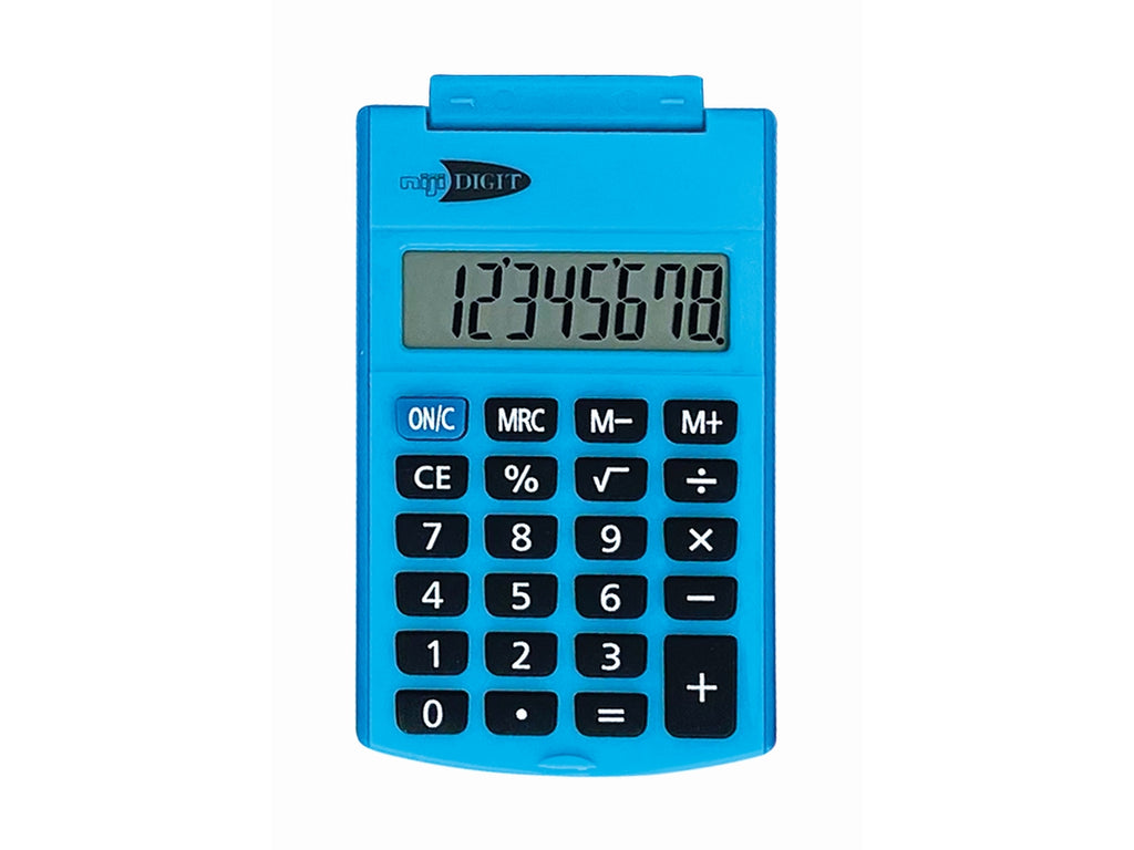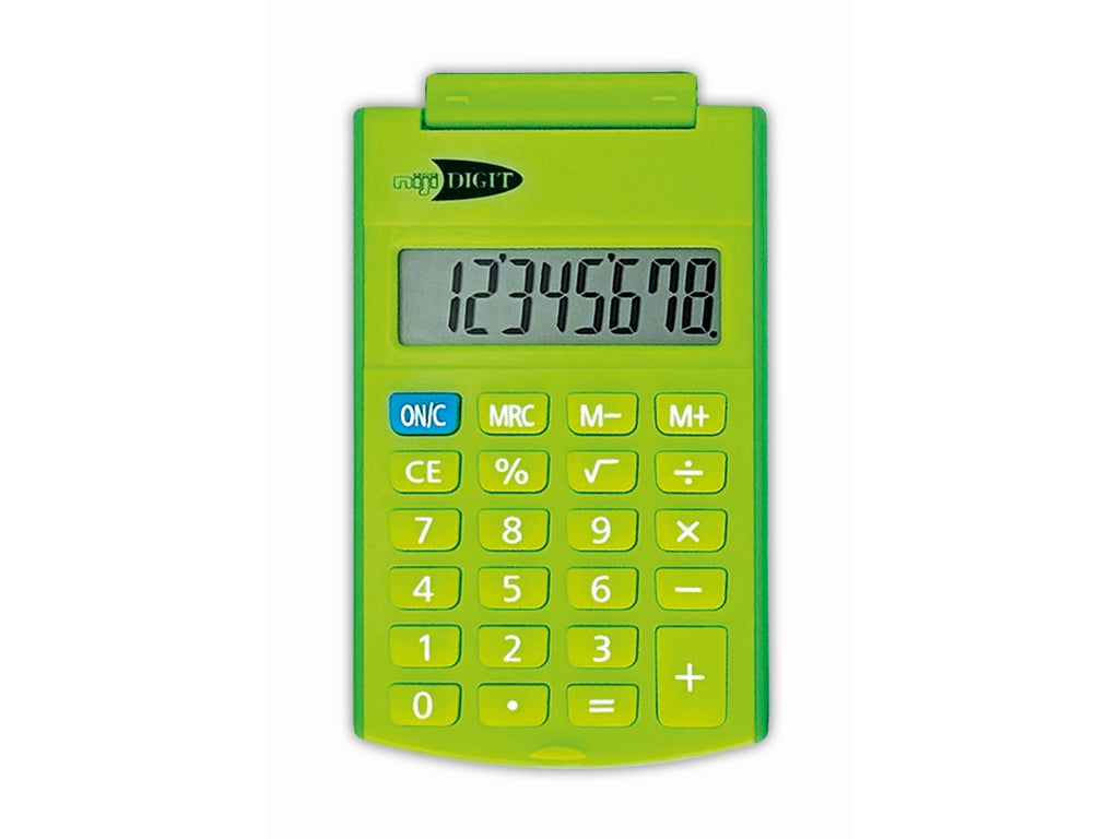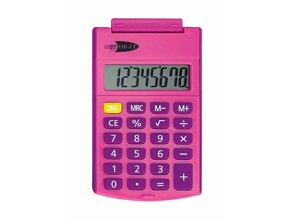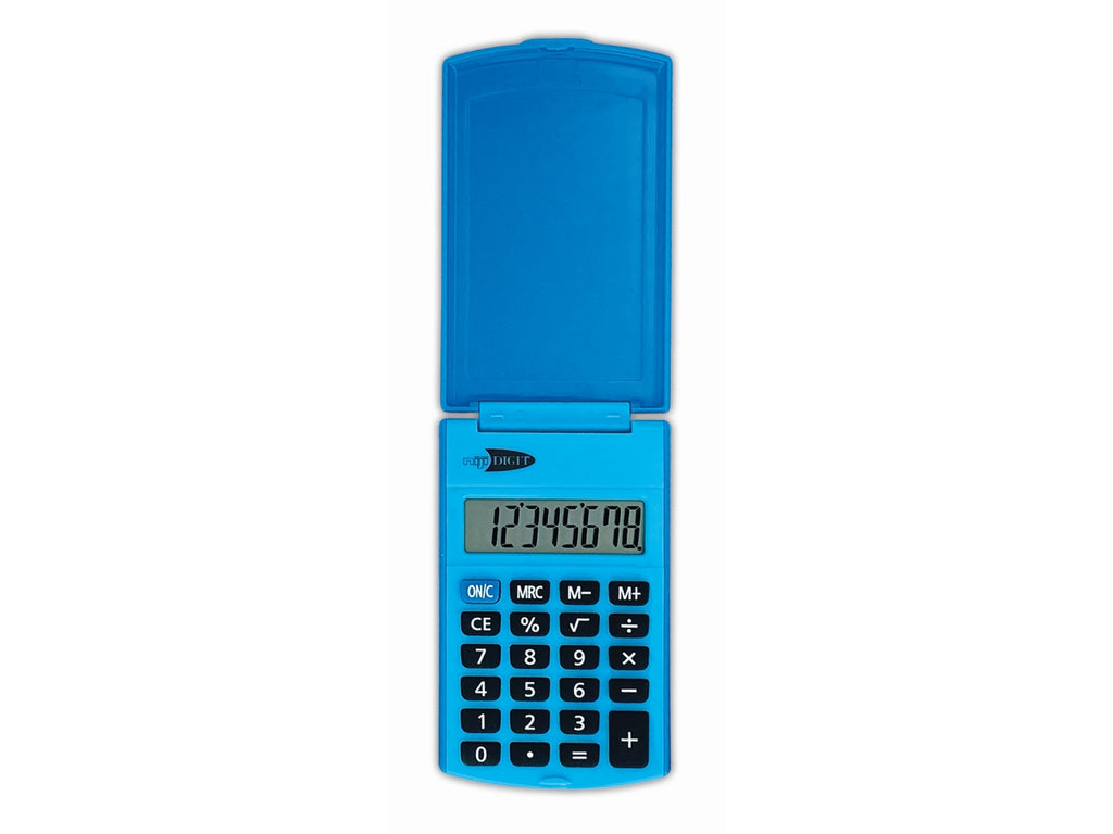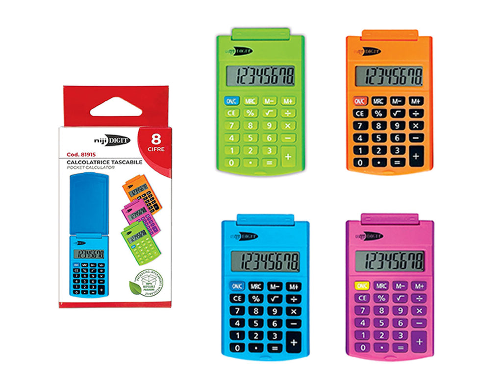 Calcolatrice tascabile 8 cifre con cover, memoria, percentuale e radice quadrata.Tasti in plastica, batteria inclusa e autospegnimento. Con coperchio protettivo e scatola singola appendibile la calcolatrice da tavolo 8 cifre in plastica e' l'accessorio ideale per chi cerca precisione e praticita' nelle operazioni quotidiane.