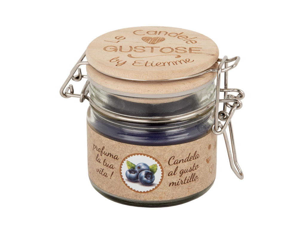 Candela h.7,5cm in barattolo di vetro al profumo di mirtillo