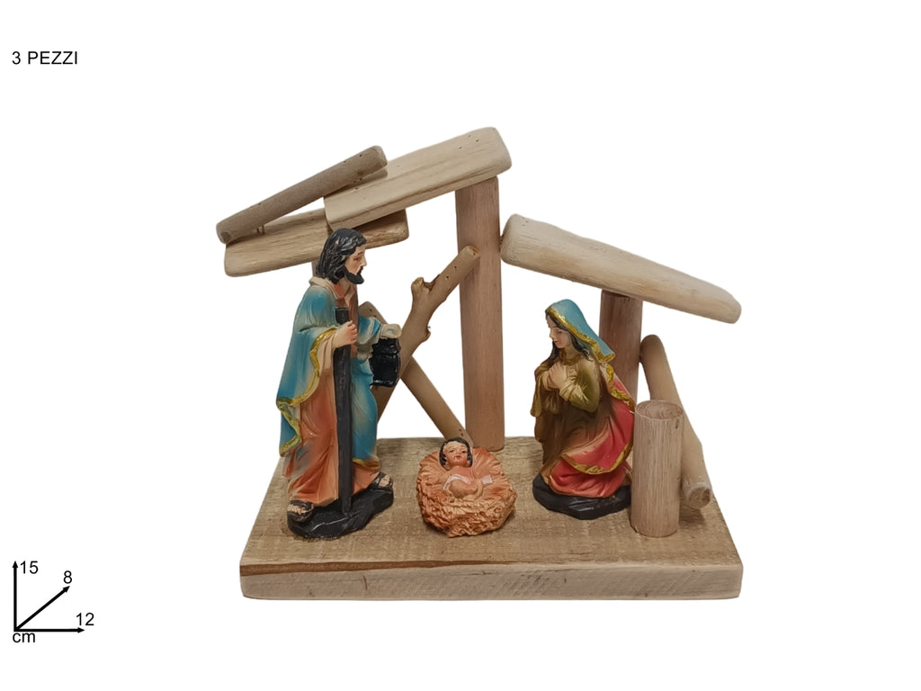 Capanna doppio tetto con nativita' set da 3 oggetti