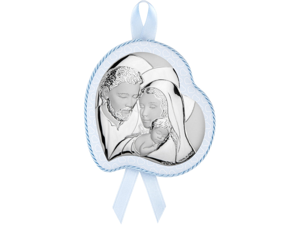 Capoculla a forma di cuore con sacra famiglia 10x12cm con carillon celeste