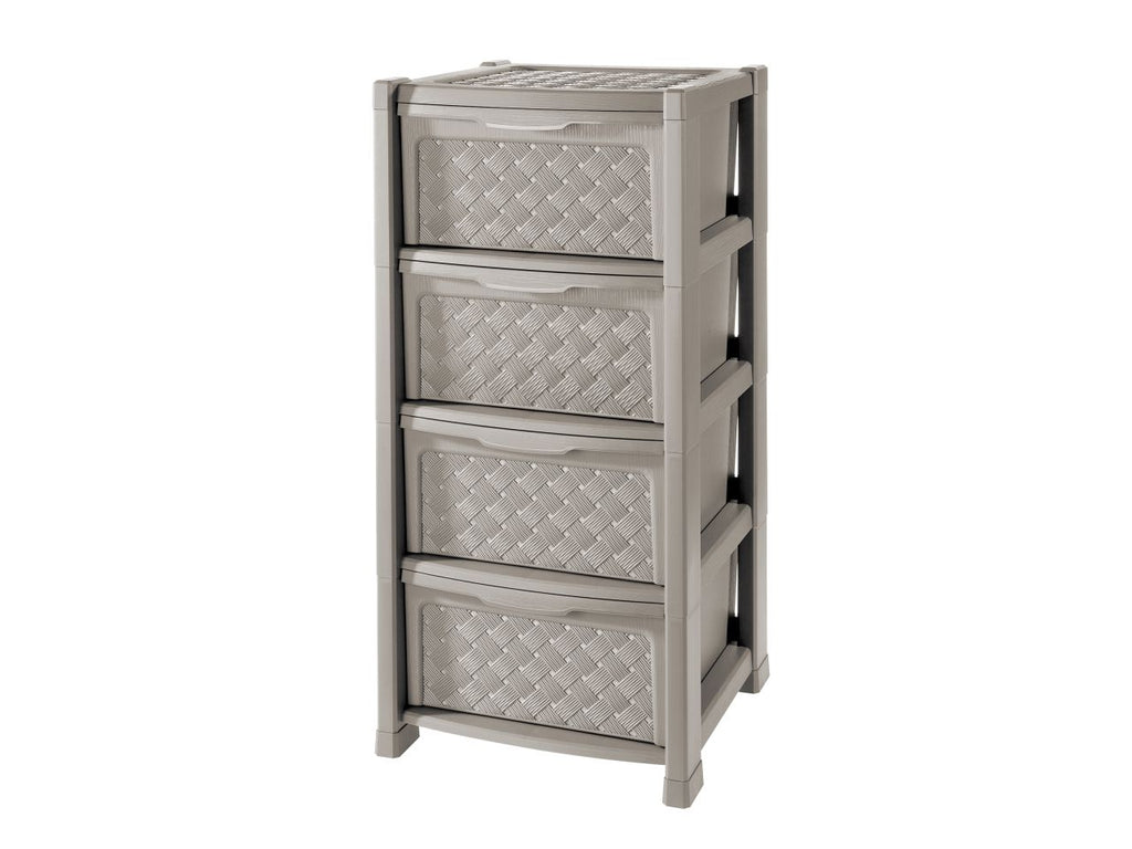 Questa cassettiera Arianna offre quattro scomparti separati e si distingue per un aspetto ricercato e piacevolmente rétro garantito dalla lavorazione intrecciata effetto vimini. Grazie all'assenza di trasparenze questa soluzione può essere utilizzata anche per riporre effetti personali e oggetti sensibili o per fare ordine nelle zone di passaggio in modo sobrio ed elegante.