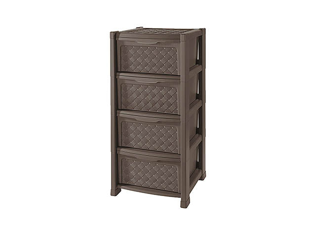 Questa cassettiera Arianna offre quattro scomparti separati e si distingue per un aspetto ricercato e piacevolmente rétro garantito dalla lavorazione intrecciata effetto vimini. Grazie all'assenza di trasparenze questa soluzione può essere utilizzata anche per riporre effetti personali e oggetti sensibili o per fare ordine nelle zone di passaggio in modo sobrio ed elegante.