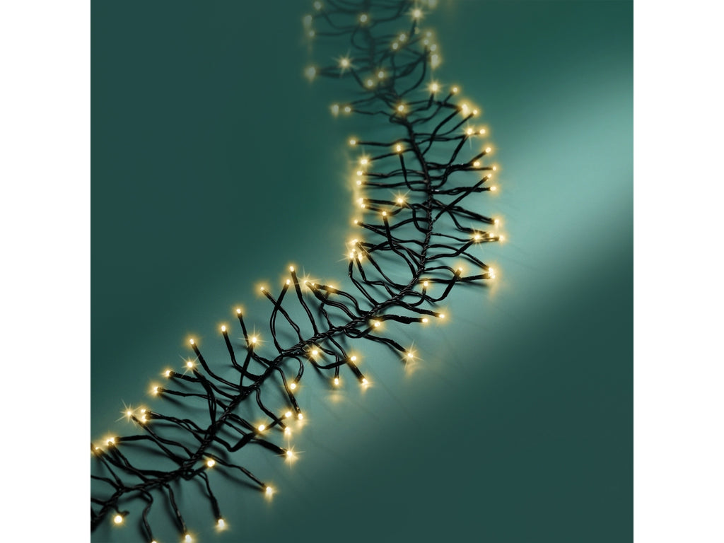Catena luci 1512led a grappolo oro soft 8 funzioni 14mt filo nero per uso interno/esterno