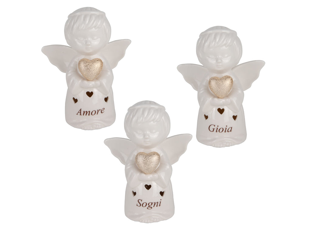 Celeste angelo in porcellana 18cm con led bianco, 3assortimenti