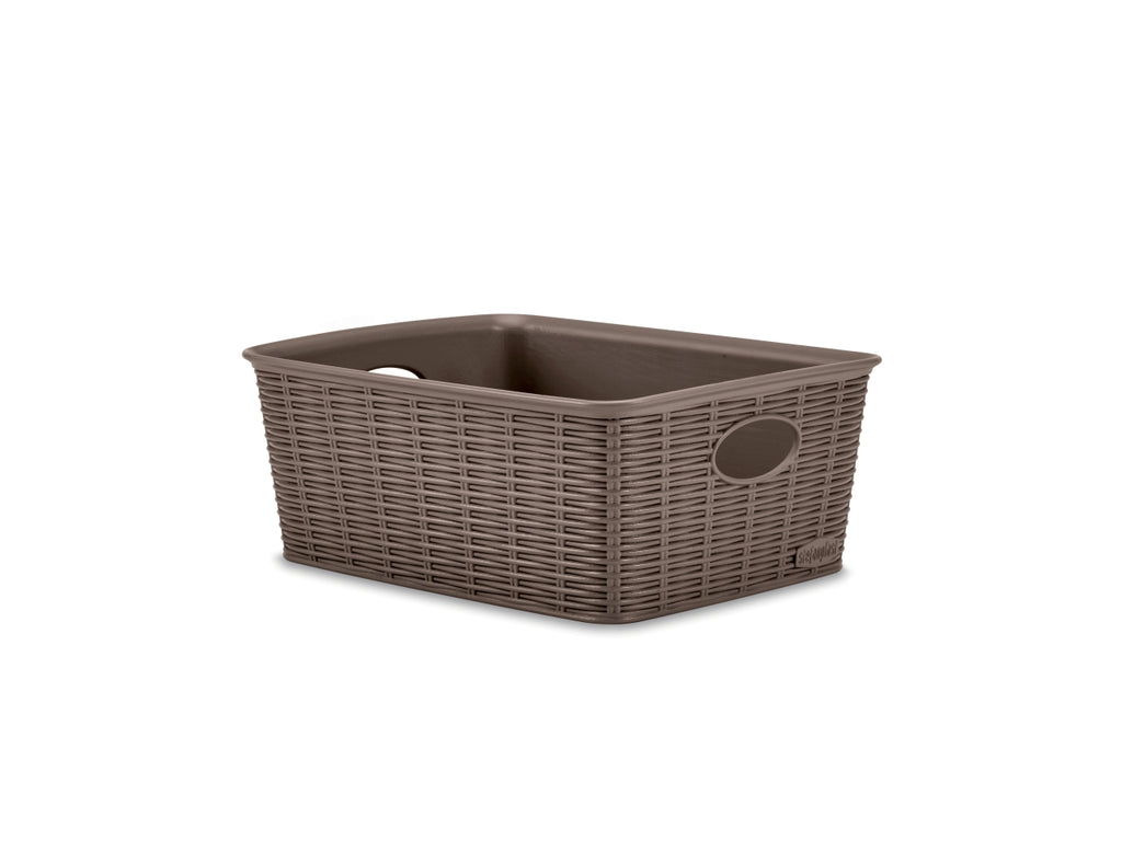 Cestino rettangolare multiuso in finitura midollino con foro maniglia.