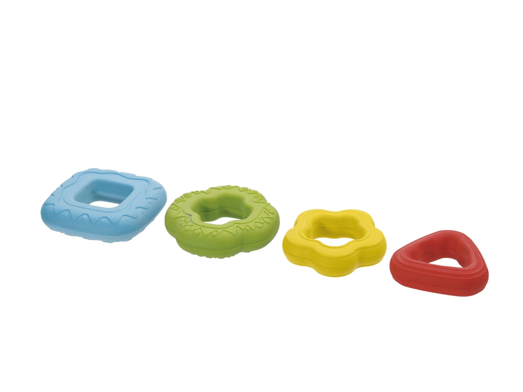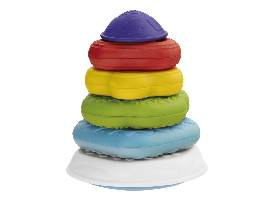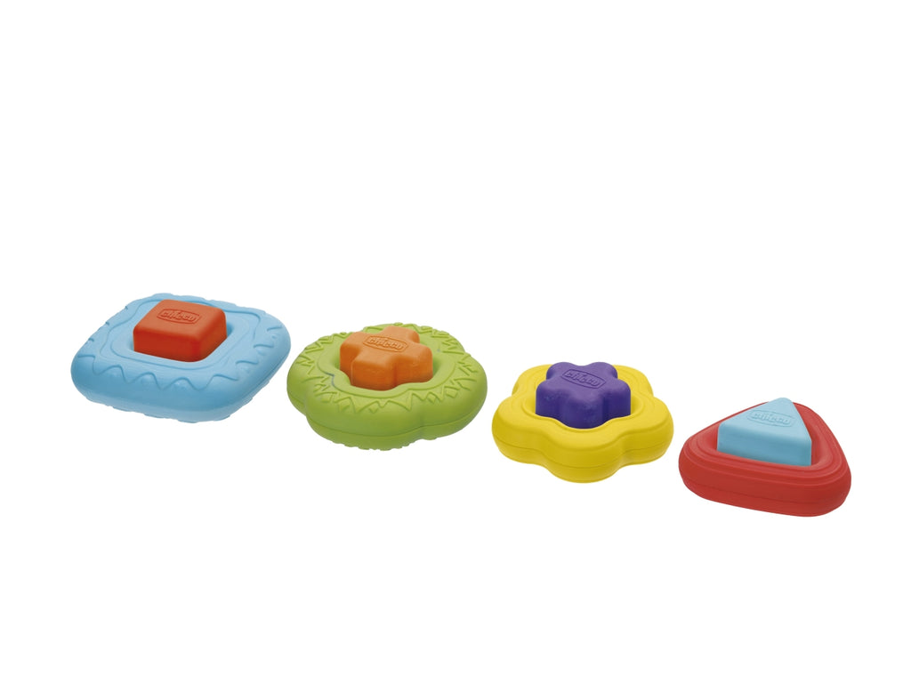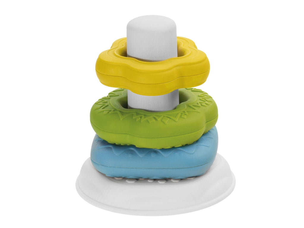 Classico gioco degli anelli rivisitato in una versione 2in1 e più stimolante per aiutare il tuo bimbo a sviluppare coordinazione e manualità. Impila i 4 anelli colorati l'uno sull'altro dal più grande al più piccolo. Incastra le 4 formine negli anelli. Stimola lo sviluppo della coordinazione mano-occhio.