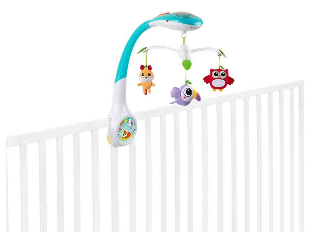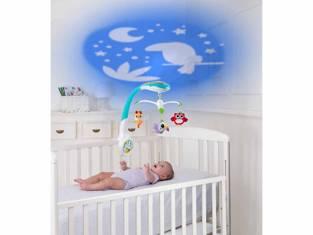 FORESTA MAGICA: la giostrina elettronica Chicco Foresta Magica è dotata di 3 morbidi pendenti in peluche rimovibili, 3 funzioni d'uso con melodie rilassanti e un proiettore con colori che cambiano automaticamente a ritmo di musica 3 FUNZIONI: la giostrina Foresta Magica di Chicco offre 3 funzioni elettroniche, attivabili singolarmente o selezionando la combinazione preferita: proiezione di immagini a colori; musiche rilassanti; rotazione dei morbidi pendenti PROIEZIONE A COLORI: attivando la funzione proiezione, la giostrina proietta l'immagine del coniglio della Foresta Magica sul soffitto della camera da letto; la luce cambia automaticamente in un caleidoscopio di colori seguendo il ritmo della musica MUSICA: 7 melodie tra cui brani di Bach e Mozart, della durata complessiva di 15 minuti, aiutano il bambino a rilassarsi e conciliare il sonno, creando il suo "rito della nanna"; il volume è regolabile a 2 livelli ROTAZIONE: i 3 morbidi pendenti in peluche a forma di animaletti della Foresta Magica ruotano sopra laculla del bambino e danno vita a un'atmosfera ottima; possono essere facilmente rimossi e lavati in lavatrice