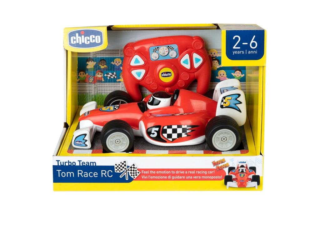 MACCHINA TELECOMANDATA: Sfreccia con Tom Race e parti all'avventura! Guida la macchinina in 4 direzioni, grazie al telecomando ad infrarossi ergonomico ed intuitivo. Divertiti a guidare come un vero pilota con i suoni reali di un'auto da corsa TELECOMANDO INTUITIVO: Il radiocomando di Tom è ergonomico e intuitivo, pensato per le piccole mani del tuo bambino. I 4 pulsanti direzionali sono grandi e facili da premere per guidare l'auto in 4 direzioni: avanti, indietro, destra e sinistra RUOTE DA CORSA: Con le quattro ruote gommate come le vere auto da corsa, Tom Race sfreccia su ogni superficie e compie grandi sgommate sul pavimento liscio EFFETTI SONORI: Premendo i 4 tasti direzionali sul telecomando si attivano tanti suoni di una vera auto sportiva, per un'esperienza di gioco autentica e per sentirsi davvero alla guida di una macchina da corsa RADIOCOMANDO INFRAROSSI: Tom Race invita il bambino a seguirlo grazie al telecomando con tecnologia a infrarossi, con cui guidare in tutta semplicità e muoversi in libertà in giro per casa DESIGN SPORTIVO: Divertiti a guidare un'auto sportiva con Tom Race e vivi un'esperienza da vero pilota, con il design grintoso e i colori fiammanti delle auto da corsa più famose al mondo GIOCHI PER BAMBINI: Scopri tutti i giochi Chicco, un mondo di divertimento con una vasta scelta di giochi prima infanzia e di regali per bambine e bambini