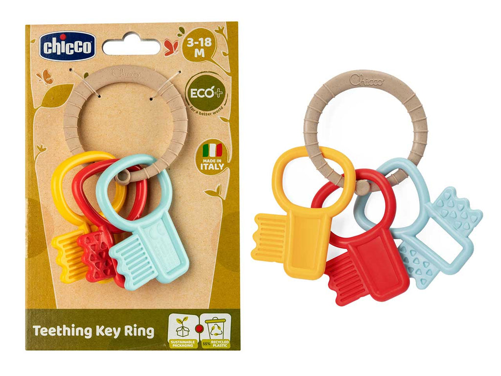 TRILLINO LEGGERO: Le Chiavi Eco+ sono facili da afferrare grazie al pratico anello e sono leggere, pensate per le piccole mani del tuo bambino STIMOLI SENSORIALI: Ogni chiave ha un colore diverso, per attirare l'attenzione del bambino e stimolarlo a giocare. Inoltre, sulle chiavi sono impressi dei rilievi pensati per l'esplorazione tattile TRILLINO DENTIZIONE: Le Chiavi Eco sono realizzate senza vernici, perciò sono sicure anche se vengono portate alla bocca. Gli elementi in rilievo sono stati sviluppati infatti per aiutare il bambino a lenire le gengive durante la dentizione PLASTICA RICICLATA: le Chiavi Afferrafacile ECO+ sono realizzate in Italia con il 55% di plastica riciclata da residui industriali SCATOLA RICICLABILE: Le nostre scatole sono riciclabili e sono realizzate in carta certificata FSC, supportando così la salvaguardia delle foreste, della biodiversità , delle persone e degli ecosistemi che da esse dipendono. GIOCHI BAMBINI: Scopri tutti i giochi Chicco, un mondo di divertimento con una vasta scelta di giochi prima infanzia e di regali per bambine e bambini